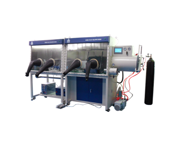 MTI VGB-10-II 雙工位手套箱專為研究材料科學、化學、半導體及相關行業所設計,採用德國BASF除氧材料,美國UOP高效吸水材料。手套箱內水氧成份可長期持續維持氣體純度在1ppm以下的高清潔與高純度的氣體環境,手/自動控制系統氣壓、手/自動控制系統的淨化狀態;自動控制氣體淨化系統的還原過程、自動提示、報警功能、系統控制參數設置、系統參數記錄、系統執行機構工況監測、透明前面板使操作更方便容易,廣泛應用於製備奈米材料和電池電極材料等。