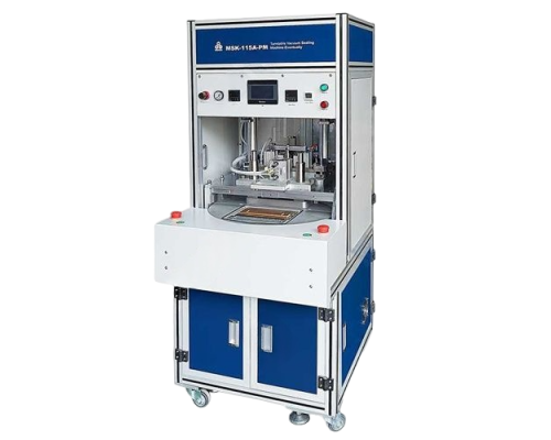 MSK-115A-PL 轉盤式真空終封機 可應用於軟包裝鋰電池的附帶刺穿和二次真空終封工藝。本機採用轉盤式設計,可進行人工上下料、自動抽真空排氣、刺穿排液、加熱封口等眾多功能。設備工作腔室真空度保持度好,封口效果優質,電池成品平整度好。