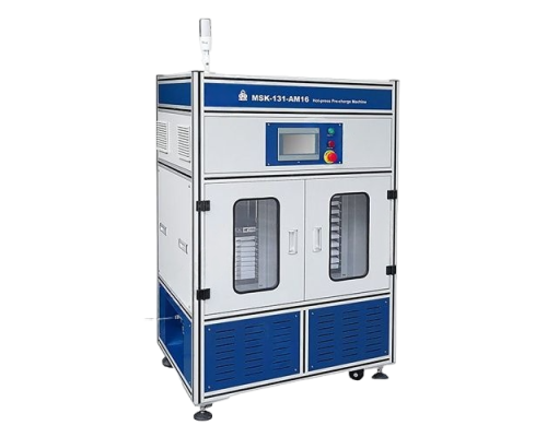 MSK-131-AM16 軟包電池熱壓化成機 是一款應用於軟包裝鋰離子電池進行加熱、加壓化成的設備。軟包鋰離子電池進行加熱加壓化成有助於改善電池 SEI 介面,提高電池容量及一致性,同時可讓電池外觀更加板正、緊致。該設備採用多通道設計,並集成化成設備,方便易用。